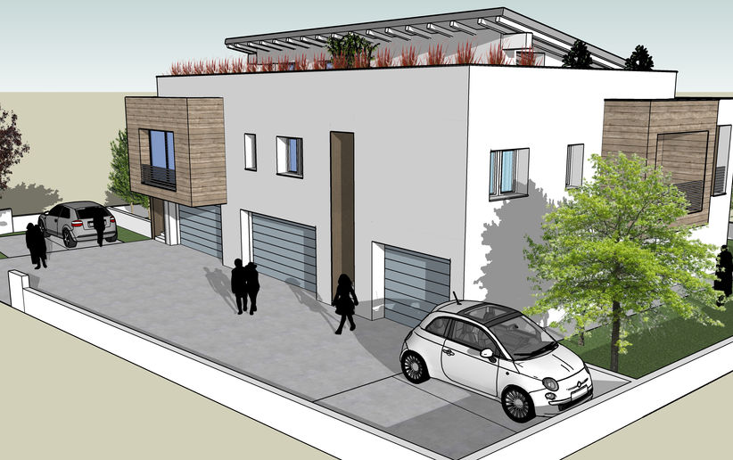 Edificio plurifamiliare che si sviluppa su due livelli e che ospita al suo interno alloggi in duplex. Fulcro del progettoè lo snodo centrale che divide gli accessori dalle residenze, soluzione questa data dalla conformità del lotto e che ha permesso di ricavare ampie aree scoperte, terrazzamenti ed elementi a sbalzo.